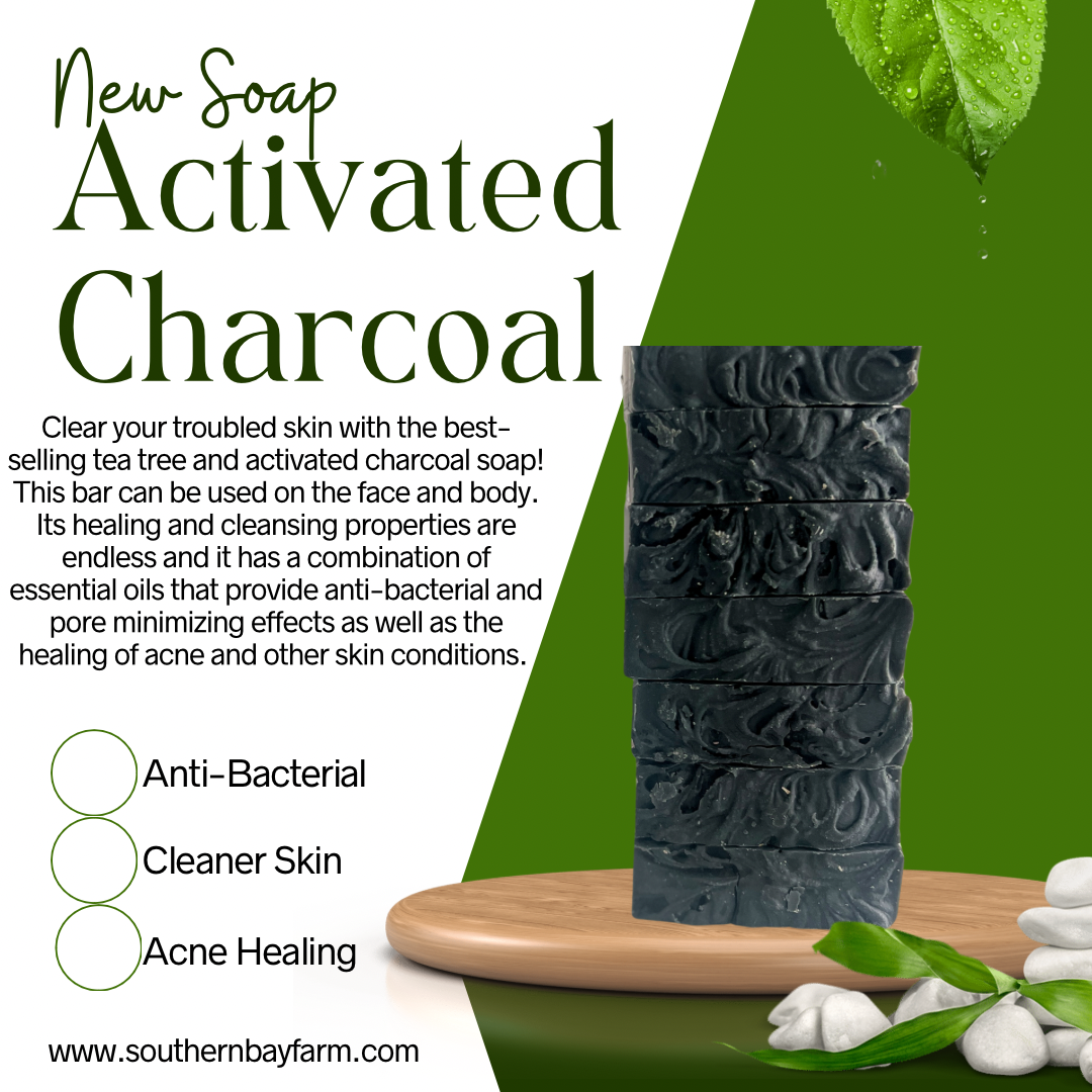 Clear your troubled skin with the best-selling tea tree and activated charcoal soap! Use this bar as a face and body soap. It offers endless healing properties and has a luxury combination of essential oils that provide anti-bacterial and pore minimizing results, as well as healing acne and other skin type conditions.